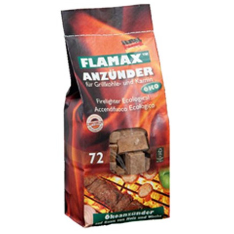 Accendifuoco a base di legno impregnato a cere. Inodore, non tossico, ideale per caminetti e barbecue. Sacchetto da 72 cubetti.
