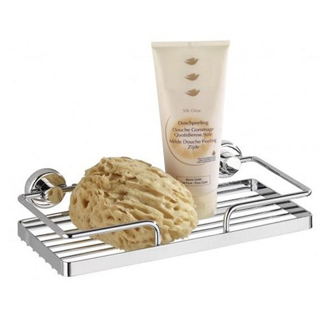 In metallo cromato. Montaggio semplice con fori o con sistema di fissaggio 'POWER LOC'. Dim. 26x13,5 cm. Peso gr 504. Kit colla inclusa.