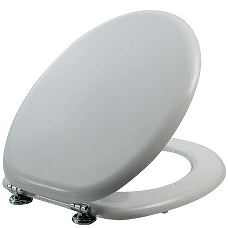 Sedile in legno verniciato a base d'acqua. Cerniere in metallo cromato regolabili. Colore bianco. Made in Europe. Dimensioni: larghezza cm 37, lunghezza da bordo anteriore fino al centro dei fori cm 42 - 47, interasse fori cm 11 - 21,5.