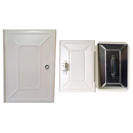 Portine di ispezione per canne fumarie, con doppia porta, maniglia interna, chiusura di sicurezza e chiave zincata in dotazione. Verniciate bianche.