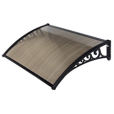Pensilina con supporti in polipropilene rinforzato, profilo in alluminio frontale sul retro. Copertura in policarbonato fume' alveolare rigato. Struttura colore nero.
