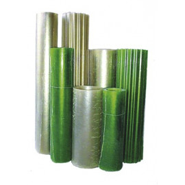 Lastre in resina rinforzata con fibre di vetro. Impiego: per coperture, rivestimenti verticali, vetraggi. Spessore mm 0,6, peso al m2kg.1, rotoli da m 20.