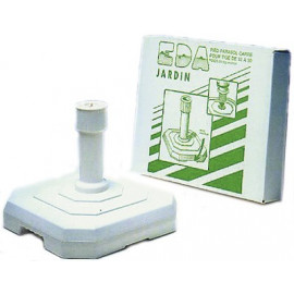 In plastica speciale, per ombrelloni con diametri da mm 32 a mm 50. Interno in cemento, peso kg 25