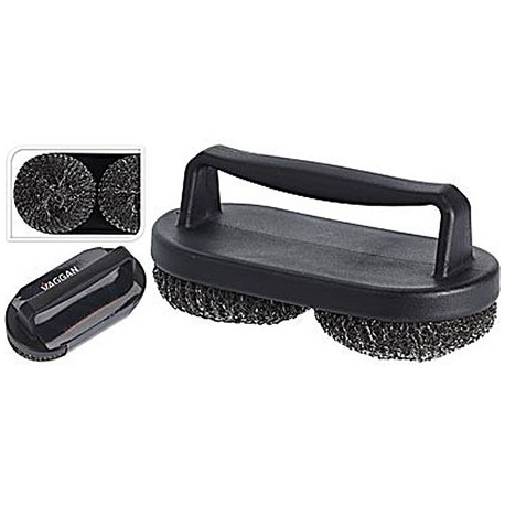 Spazzola con doppia spugna metallica abrasiva. Lunghezza 16 cm.