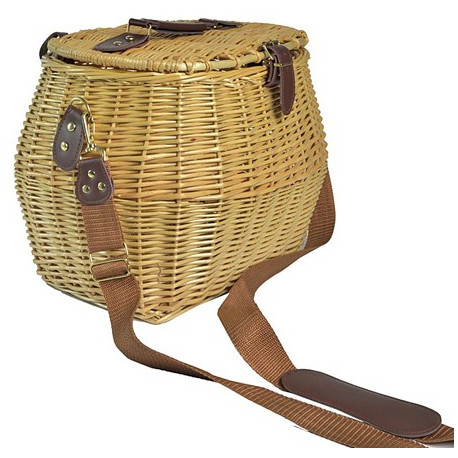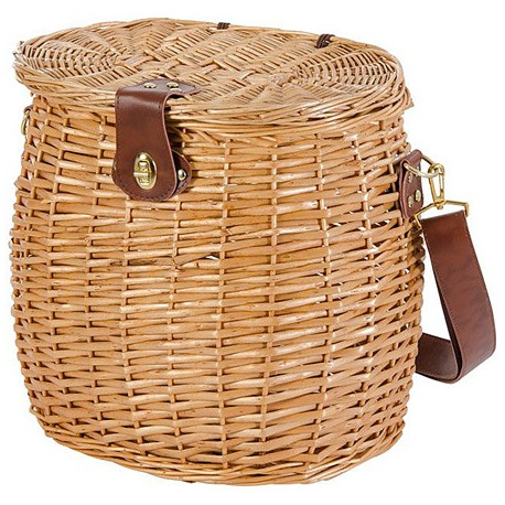 Cesto in vimini bollito, con tracolla e chiusura. Dimensioni 29x25x28h cm. Peso 1,833 kg.
