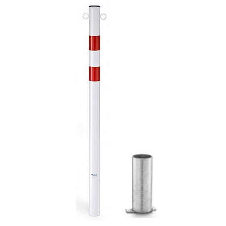 Con anelli saldati per fissaggio catena. Altezza cm 120. Diametro mm 60. Disponibile come accessorio bussola in acciaio zincato per fissaggio a terra. = bussola