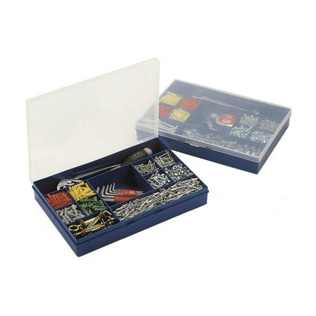 Organizer a 12 scomparti con coperchio trasparente. Dimensioni (L x P x H) mm. 345 x 252 x 55