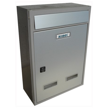 Sportello e struttura in alluminio anodizzato argento, impostazione frontale. Cornice esterna in plastica colore argento. Dimensioni mm 270x390x130