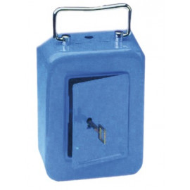 In lamiera pesante, verniciato a forno con maniglia in filo d'acciaio nichelato. Dimensioni cm.15x11x6