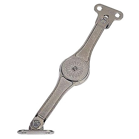 Braccetto snodato a scatti che permette di fermare l'antina nella posizione desiderata. Finitura cromata. In blister da 1 pz.