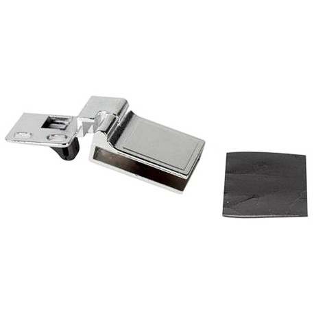 Cerniera a scatto per antine a battente. Dimensioni HxL 30x43 mm. Spessore massimo 7 mm. Blister da 2 pz. Finitura cromata.
