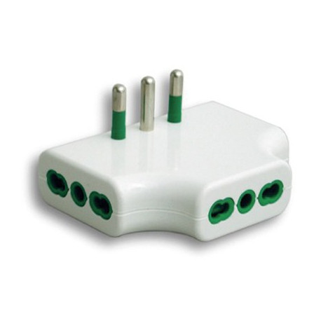 Adattatore spina 2P+T 16A - 3 Prese 2P+T 16A bipasso. Colore bianco.
