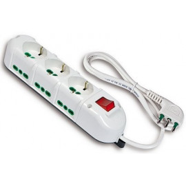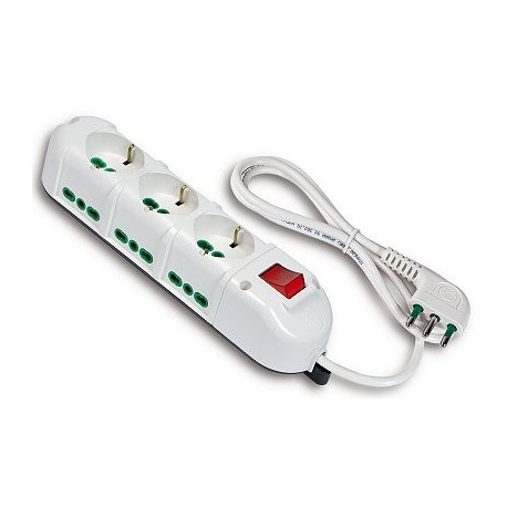 Lunghezza cavo m 1,5. Sezione cavo 3x1 mm2. 3 prese 2P+T 16A bipasso/Schuko + 6 prese 2P+T 16A bipasso. Spina 2P+T 16A. Interruttore luminoso =