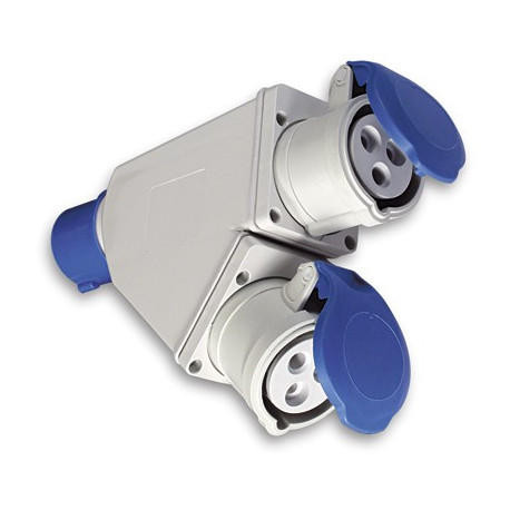 Moltiplicatore industriale da Spina 2P+T 16A CEE 220V blu a 2 Prese 2P+T 16A 220V IP44 =