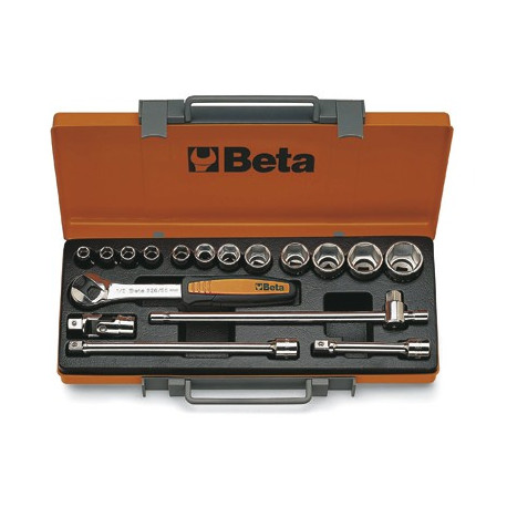 In cassetta di lamiera con 12 chiavi a bussola da mm. 10 a 22 e 5 accessori.