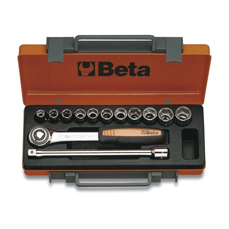 In cassetta di lamiera con 11 chiavi a bussola da mm 10 a 22 e 2 accessori.