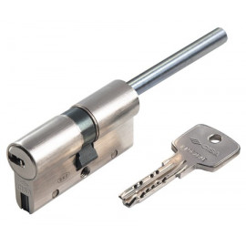 Corpo in ottone rivestito. Gancio in acciaio cementato e temperato con testina antistrappo ed antimartellamento. Tre chiavi nichelate.