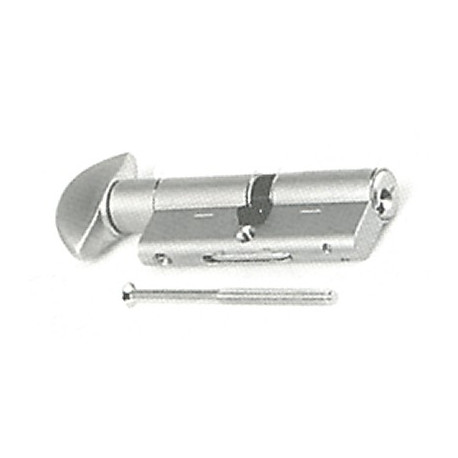 Cilindro di sicurezza a 17 pistoncini con pomolo, in ottone nichelato, protezione antitrapano. 5 chiavi in dotazione.