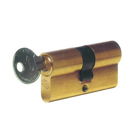 Doppio cilindro profilato completo di vite ottonata M5X75 mm. Nottolino universale mm 10. Finitura: ottone lucido.