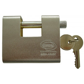 Corpo in ottone rivestito. Gancio in acciaio cementato e temperato con testina antistrappo ed antimartellamento. Tre chiavi nichelate.