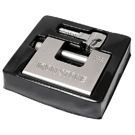 Lucchetto corazzato in acciaio con 5 chiavi punzonate in dotazione.
