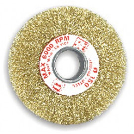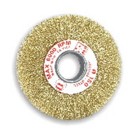 Spazzola circolare per mola. Con filo acciaio ottonato diametro mm 0,3. Progettata per operare a regimi di rotazione (circa 6.000 giri/min). Dimensioni mm 125 x 32. Foro diametro mm 16