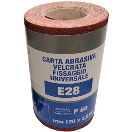 Carta abrasiva al corindone. Indicata per lavorazione meccanica di legni grezzi, metalli, stucco e plastica. Lunghezza rotoli m 25. Altezza mm 120.