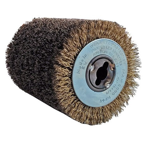 Spazzola a rullo in cordicella d'acciaio LIZ per levigatrici e macchine satinatrici di tipo Makita. Dimensioni 100x115 mm. Rotazione max 3500 giri/min.