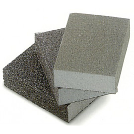 Spugne sintetiche ricoperte di abrasivo ideali per levigare bordi, angoli e scanalature.