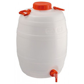 Fustini a botticella con rubinetto. Materiale: PE HD. Certificati per uso alimentare.