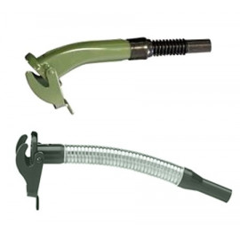 Beccucci flessibili verniciati a polvere in confezione con supporto in plastica e viti per il fissaggio alla tanica.