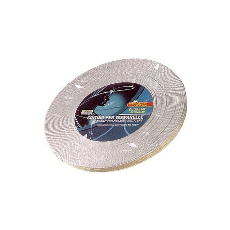 In cotone, colore beige-grigio. Larghezza mm 22. Lunghezza m 50.