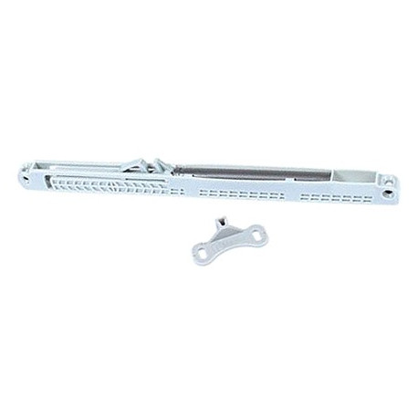 Ammortizzatore per cassetti in legno con guide a rotella. Effettua il rientro automatico con frenata del cassetto. Finitura grigia.