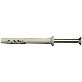 Ancorante UNIVERSALE in nylon prolungato con bordo svasato, con speciali alette antirotazione, BREVETTATO, completo di speciale vite a legno testa esagonale falsa rondella impronta torx, in acciaio zincato, certificato ETA-CE.