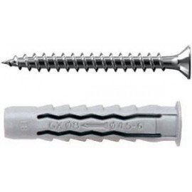 Ancorante UNIVERSALE in nylon prolungato con bordo svasato, con speciali alette antirotazione, BREVETTATO, completo di speciale vite a legno testa esagonale falsa rondella impronta torx, in acciaio zincato, certificato ETA-CE.