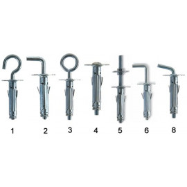 In acciaio. Diametro 9 mm. Lunghezza tassello 45 mm. Filetto M5.
