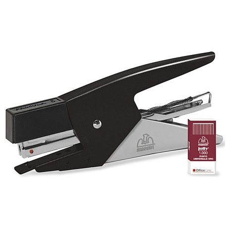 Cucitrice a pinza per punti passo 6. Colori assortiti. Corredata di 1000 punti. Confezionata in blister.