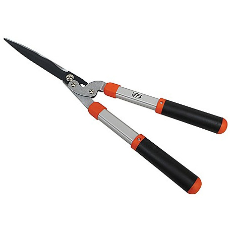 Tagliasiepi con lama ondulata cm 21 e sistema di taglio a leva. Manici fissi in alluminio, lunghezza totale cm 60.