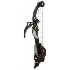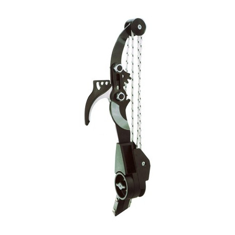 Lama e controlama in acciaio al carbonio temperato. Manico telescopico in alluminio anodizzato con carrucola guidafilo. Lunghezza dell'asta teloscopica m 6. Testa ad inclinazione regolabile in un raggio di 250 gradi. Permette il taglio di rami fino a mm 40 di diametro