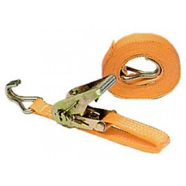 Nastro in poliestere carico di rottura Kg 3600. con tenditore a cricchetto da mm.35. Ganci ad uncino alle estremita'. Conf. da 1 pz. Larghezza mm 35, lunghezza mt 6