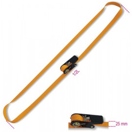 Nastro in poliestere con tenditore a cricco. Indicate per bagagli e piccoli carichi. Larghezza mm 25. Lunghezza m 5. In confezione da 3 pezzi