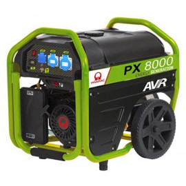 Motore PRAMAC OHV a benzina, cilindrata 420 cc, voltaggio 230 V. Potenza continua 5,0 kWA ad una fase. Avviamento a strappo ed elettrico. Dimensioni (LxPxH) 73x52x67cm, peso 94 kg. Kit di trasporto con maniglie, ruote e attrezzi. 1 Prese schuko, 1 presa 16A, 1 presa 32A x 230V. Capacita' serbatoio lt.25. Protezione IP23/IP44. Rumorosita' 7 m 72 dB.