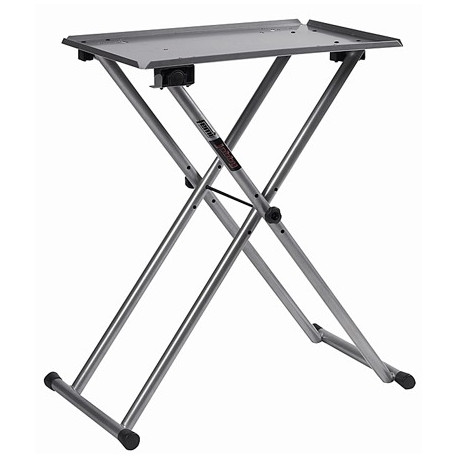 Struttura in profilato di alluminio. Possibilita' di collegamento elettrico di tre elettroutensili. Staffe con fissaggio rapido. Impugnatura integrata per il trasporto. Gambe telescopiche ripiegabili. Appoggi laterali regolabili in altezza e lunghezza. Carico massimo 120 kg. Peso 20 kg. Larghezza mm 1150.