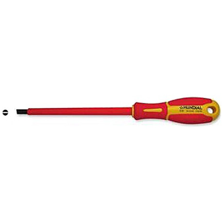 Cacciavite a taglio, isolato 1000 V certificato VDE. In acciaio cromo vanadium molibdeno. Impugnatura ergonomica bicomponente.