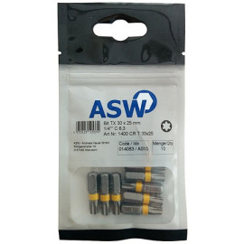 Bits da 1/4' impronta TORX, in acciaio antistrappo. Lunghezza mm 25. Finitura lucida con anello colorato.