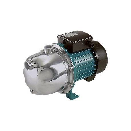 Elettropompa centrifuga autoadescante. Corpo pompa in acciaio inox AISI 304. Protezione IP 44, classe di isolamento F girante in ottone con protezione albero motore. Per il sollevamento di liquidi, acque pulite, fino ad una profondita' max. di m 9. potenza kW 1. Portata 20 L/min a 35 m di prevalenza.