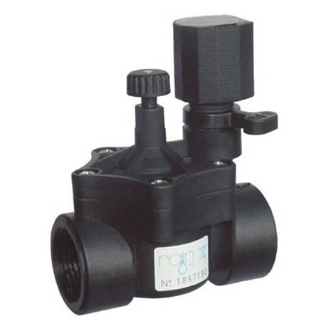 Elettrovalvola a membrana con corpo in nylon + fibra di vetro. Solenoide 24 VAC. Tenuta stagna IP68. Adattatore e leva per apertura manuale. Pressione d'utilizzo min/max 1/12 Bar. Molla membrana progressiva in acciaio. Portata min 20 lt/min, max 90 lt/min.