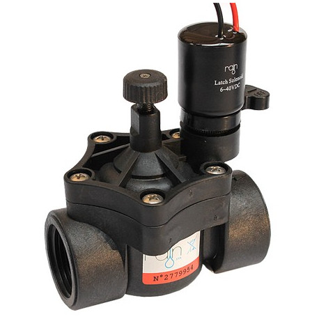 Elettrovalvola a membrana serie LATCHING (9VDC) con solenoide bistabile da utilizzare per impianti d'irrigazione con programmatori a batteria. Corpo in nylon + fibra di vetro. Tenuta stagna IP68. Adattatore e leva per apertura manuale. Pressione d'utilizzo min/max 1/12 Bar. Molla membrana progressiva in acciaio. Portata min 20 lt/min, max 90 lt/min.