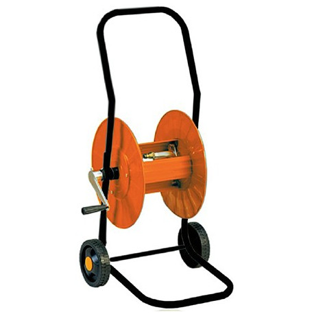 Avvolgitubo in metallo. Verniciatura epossidica. Ruote in polietilene da 150 mm. Capacita' mt 50 di tubo di irrigazione da 1/2"