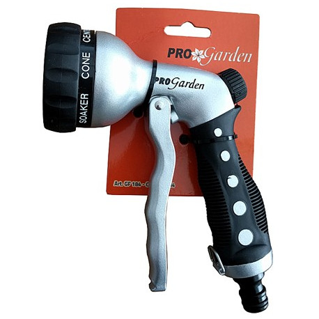 Pistola 7 funzioni con impugnatura anti scivolo e comando frontale. 7 posizioni di innaffio. Innesto rapido in plastica.